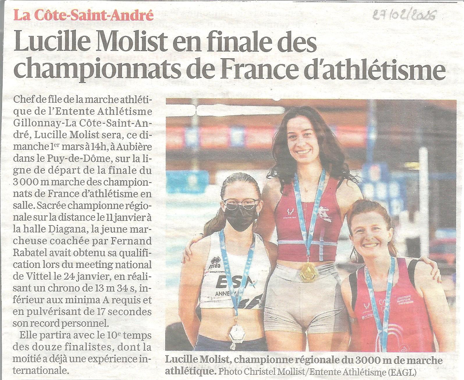 - Dauphiné Libéré du 27 février 2026 Lucille aux France élite en salle