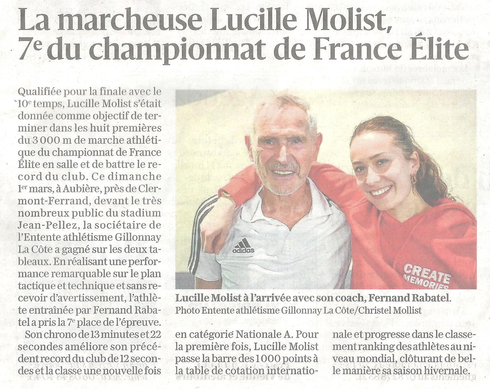 - Dauphiné Libéré 21 février 2019 Résultats de Lucille aux France Élite en salle et des régionaux de cross à Yzeure